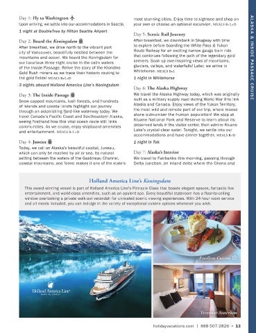 mountains and ocean. We board the Koningsdam for that continues following the path of the legendary gold AL A SK A & INSIDE PA S SAGE CRUISE