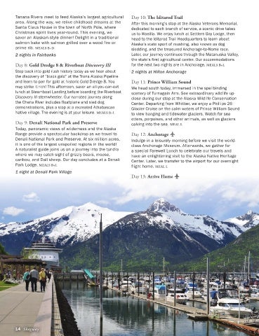 Day 8: Gold Dredge 8 & Riverboat Discovery III for the next two nights are in Anchorage. MEALS B+L