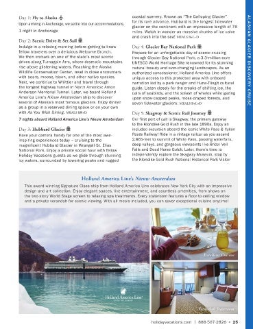 several of Alaska’s most famous glaciers. Enjoy dinner seven tidewater glaciers. MEALS B+L+D
