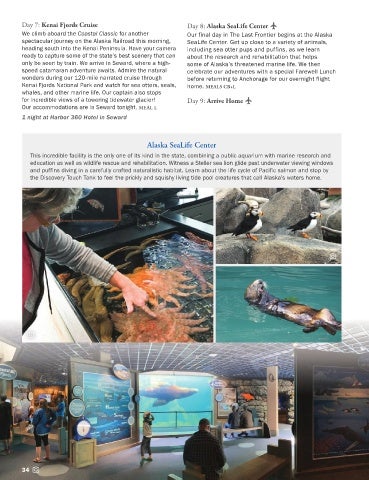 only be seen by train. We arrive in Seward, where a high- some of Alaska’s threatened marine life. We then