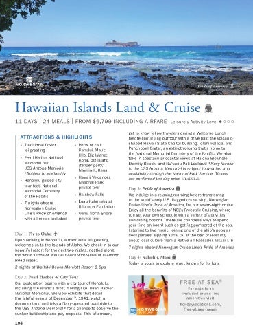 Upon arriving in Honolulu, a traditional lei greeting about local culture from a Native ambassador. MEALS L+D