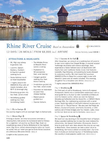 Our journey begins with an overnight flight to Switzerland. on the sun deck as we sail to Germany. MEALS B+L+D