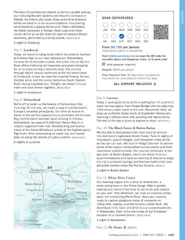take us along the shores of Lake Lucerne. MEALS B+D into Germany’s legendary Black Forest. Take in sights of