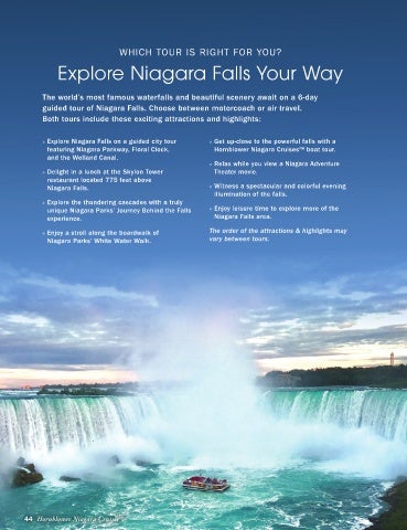guided tour of Niagara Falls. Choose between motorcoach or air travel.