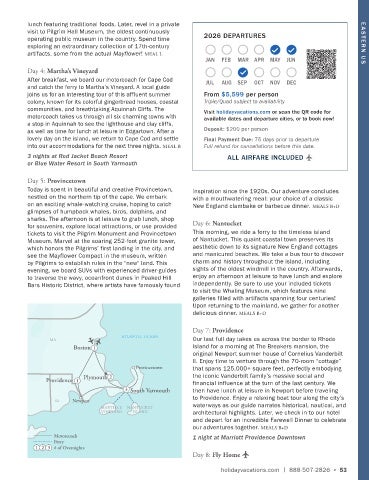 on an exciting whale-watching cruise, hoping to catch New England clambake or barbecue dinner. MEALS B+D