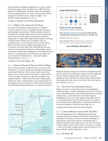 depart for Manchester, Vermont, where our overnight 2026 DEPARTURES