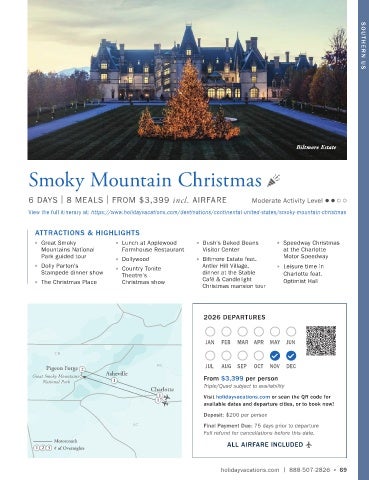 View the full itinerary at: https://www.holidayvacations.com/destinations/continental-united-states/smoky-mountain-christmas