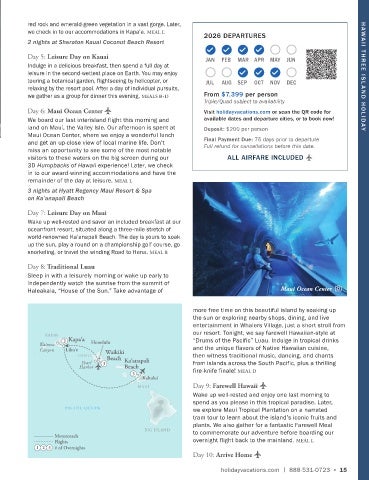 touring a botanical garden, flightseeing by helicopter, or JUL AUG SEP OCT NOV DEC HAWAII T HREE ISL AND HOLIDAY