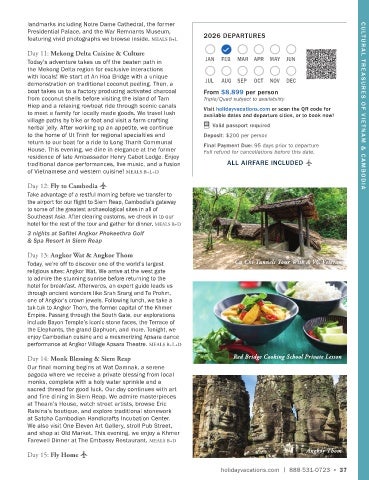 Hiep and a relaxing rowboat ride through scenic canals Visit holidayvacations.com or scan the QR code for CULT UR AL T RE A SURE S OF VIE T NAM & CAMBODIA
